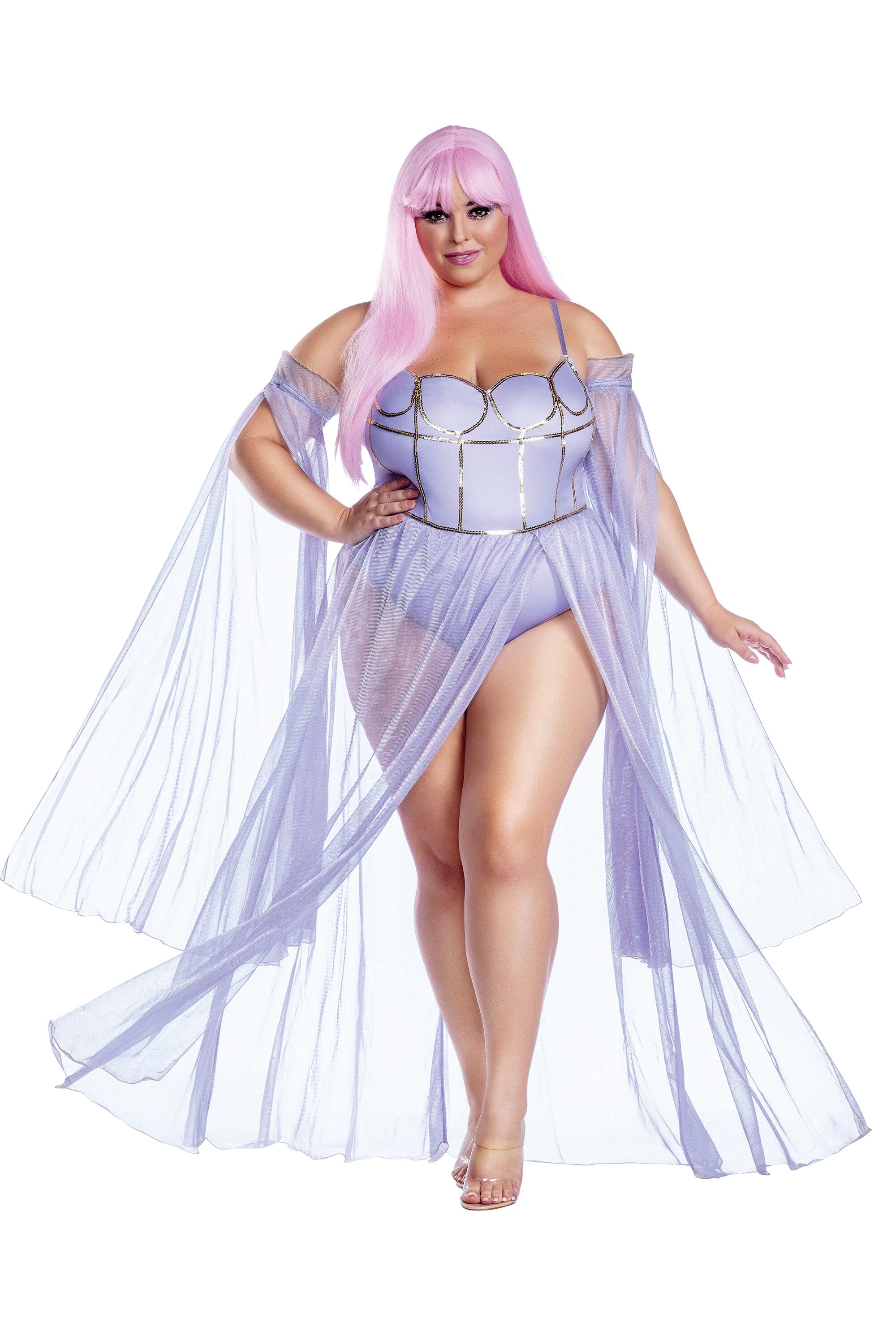 Dreamgirl Plus Size Moonlit Goddess Bodysuit with Sequin and Sheer Skirt Women’s Costume – Fantasy Outfit
